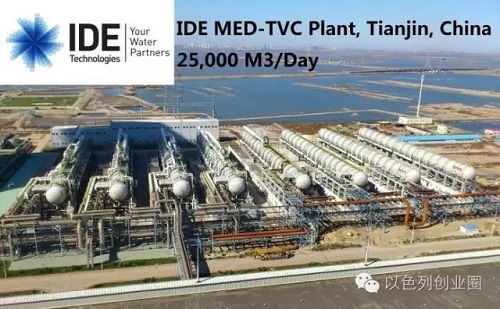 中國方面,IDE將其視作一個極其重要的市場,并積極開展市場拓展。2009年,IDE與天津國投津能發(fā)電有限公司合作,為國投北疆發(fā)電廠海水淡化項目一期建造日產(chǎn)20萬噸的低溫多效海水淡化裝置項目。2011年項目竣工投產(chǎn),是中國已建成最大的海水淡化項目,也是中國第一個向社會供水的大型海水淡化項目。2014年5月21日,中國副總理劉延?xùn)|參觀了IDE設(shè)在以色列海德拉的海水淡化廠,并肯定了中國和以色列在水處理技術(shù)領(lǐng)域的巨大合作潛力,這加速了IDE在中國的擴(kuò)張步伐。