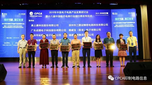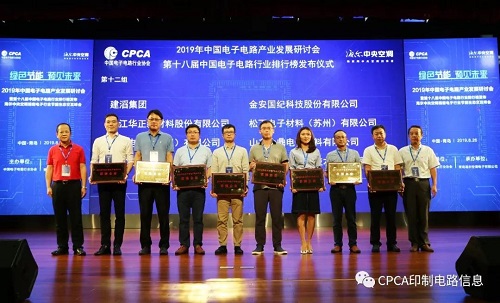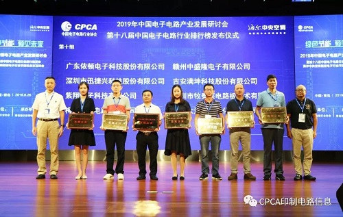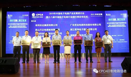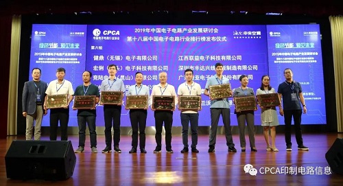 2019年第十八屆中國電子電路行業排行榜頒獎典禮盛大舉行