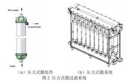壓力式超濾膜系統水通量高,膜的通量為40~120 lmh,需要的膜面積較少。